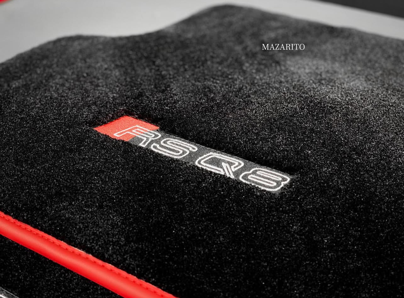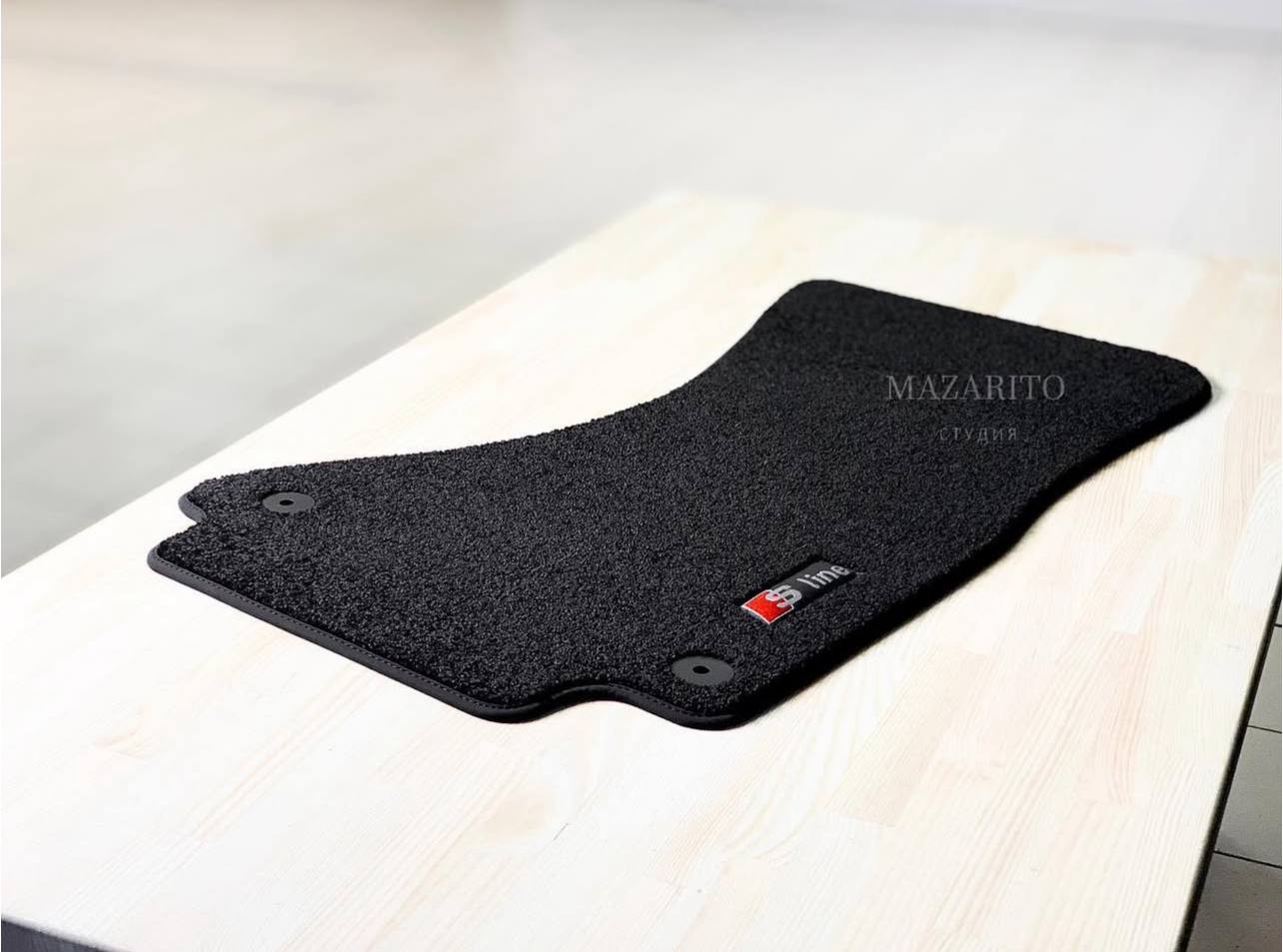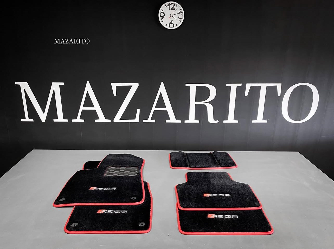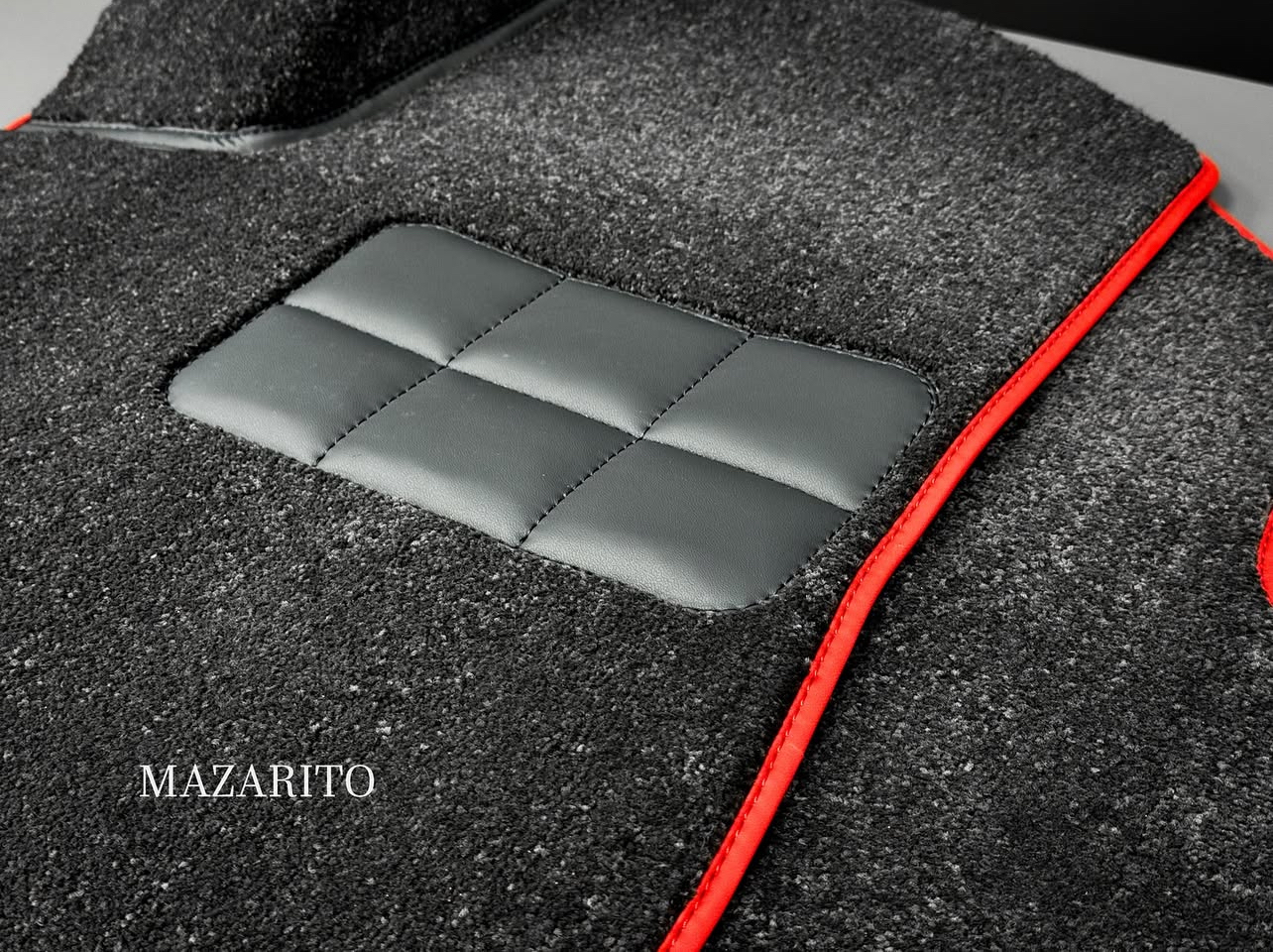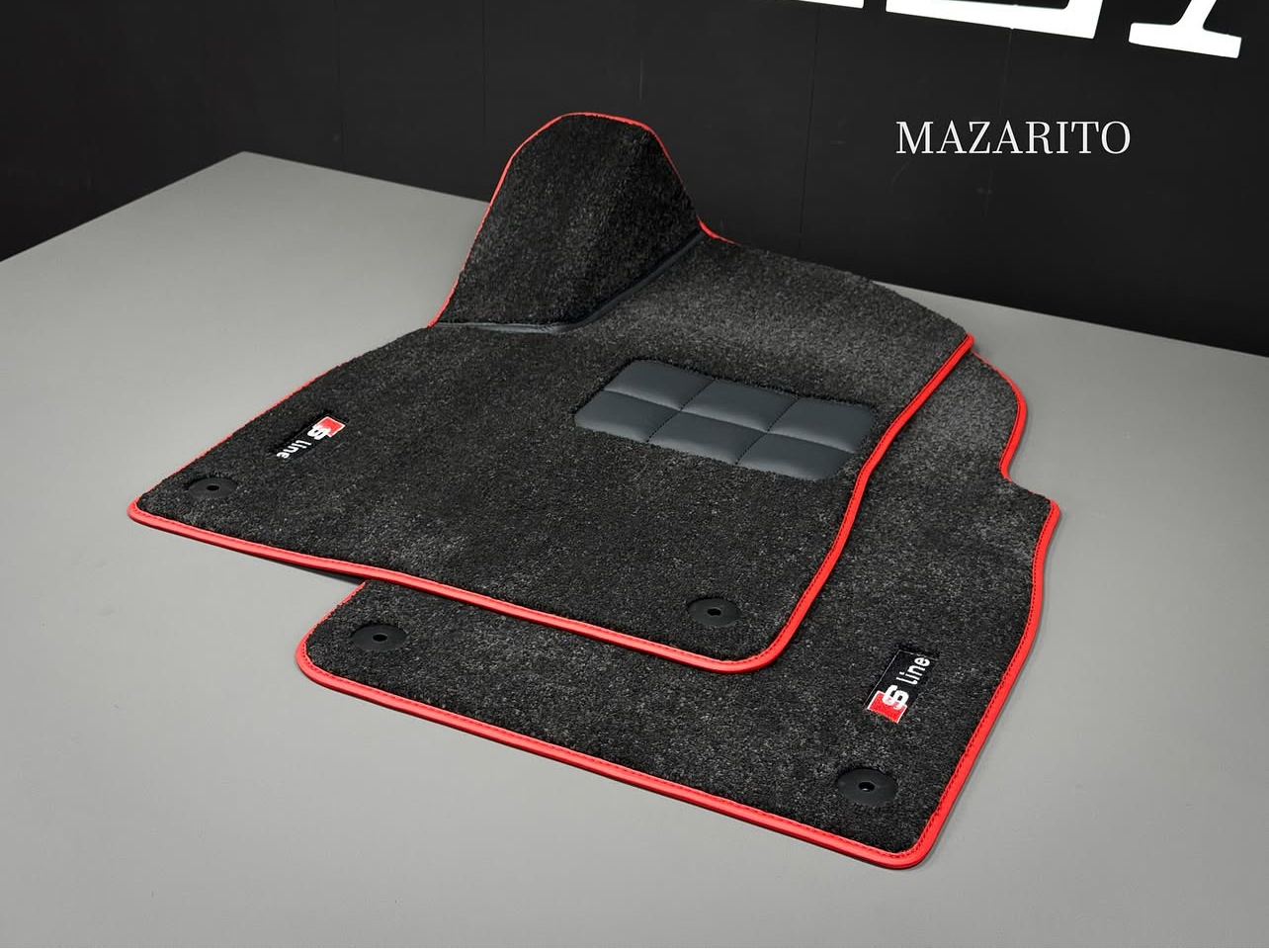 Добавили окантовку из экокожи Наппа красного цвета и вышивки S8 на каждом коврике.