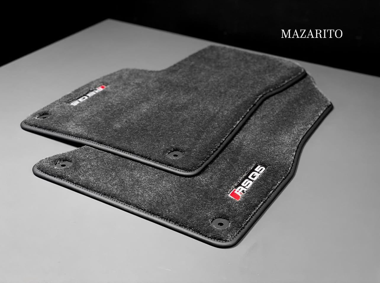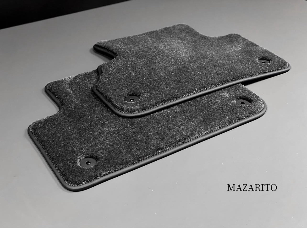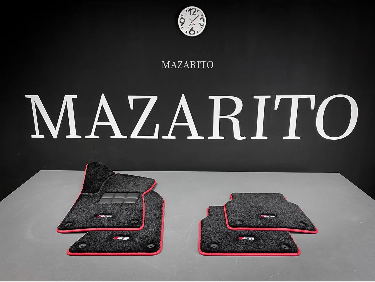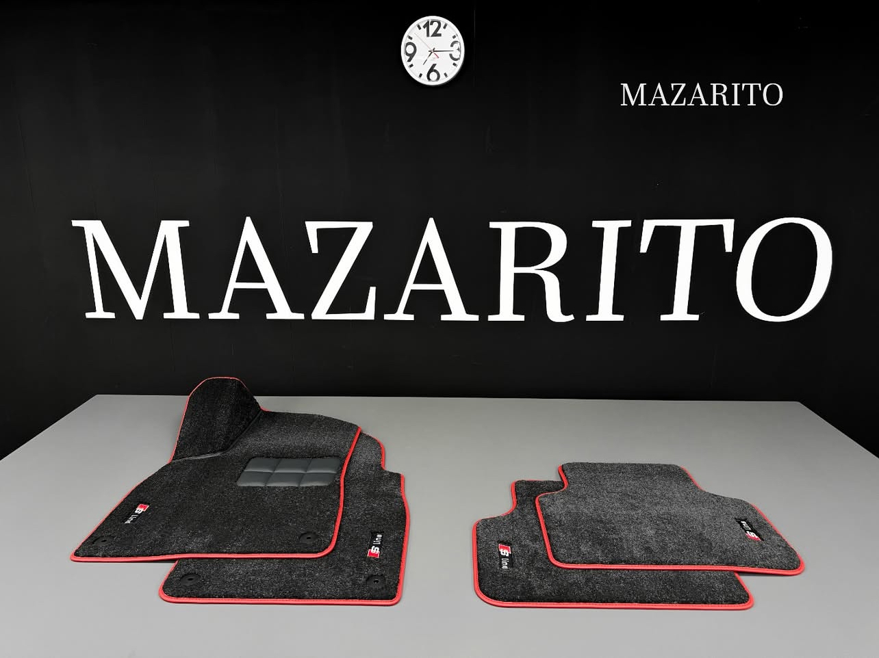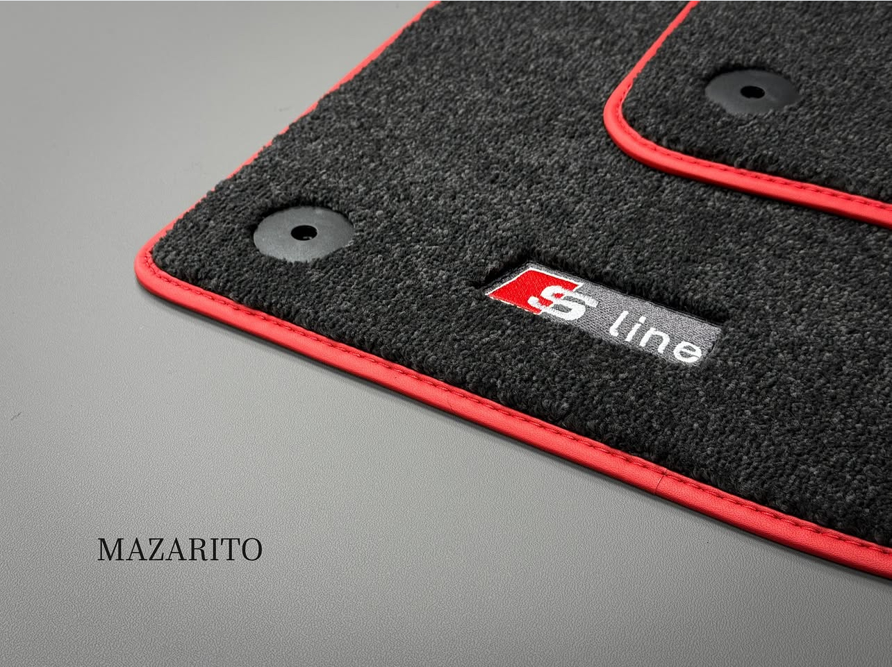 Добавили окантовку из экокожи Наппа красного цвета и вышивки S8 на каждом коврике.