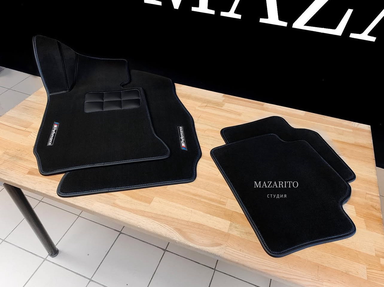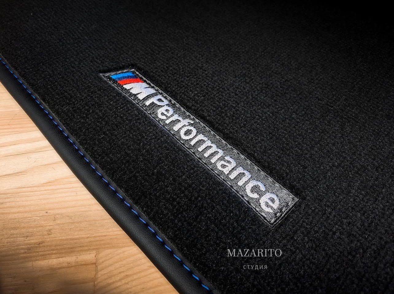 Подпятник из экокожи и вышивками М на всех ковриках.
