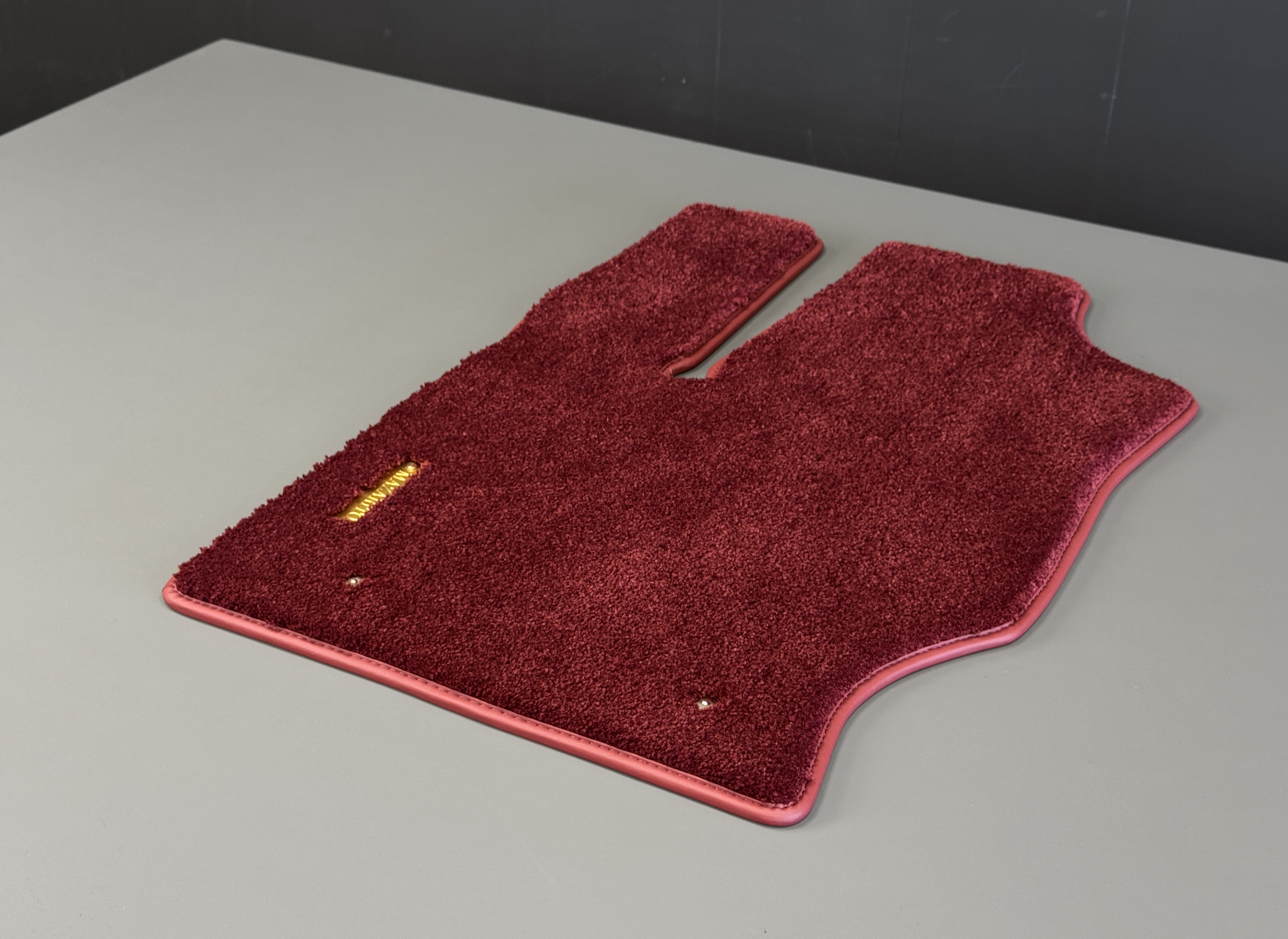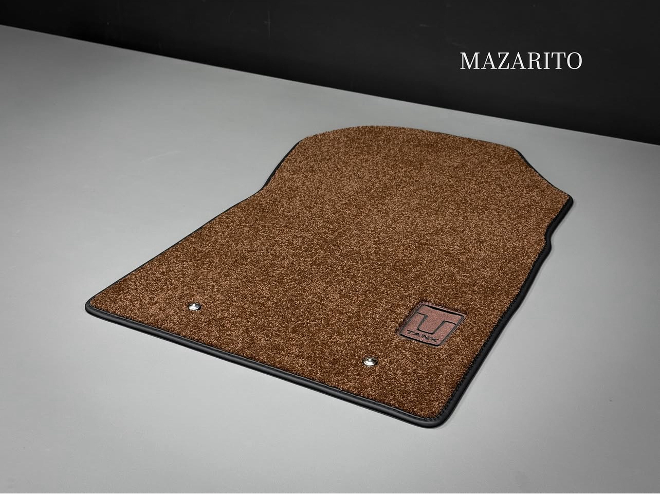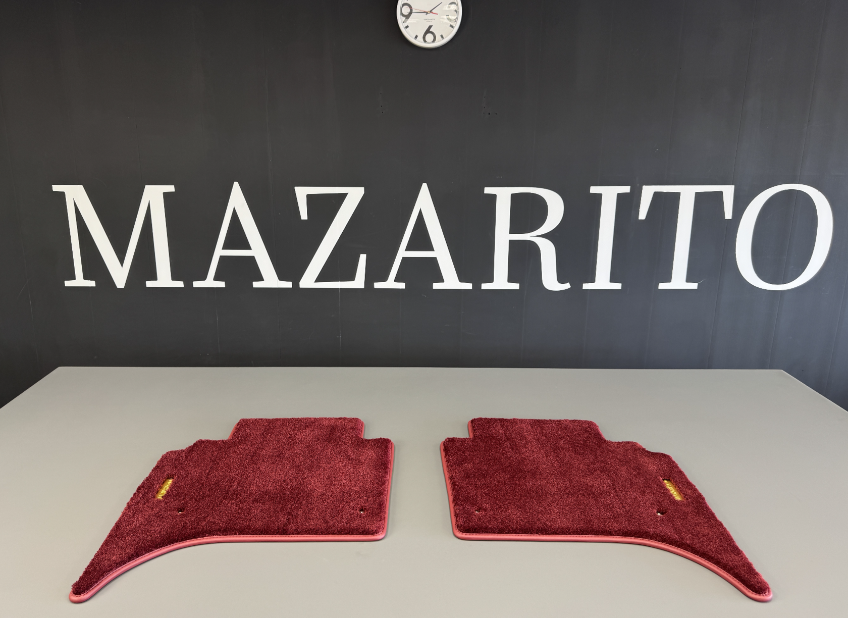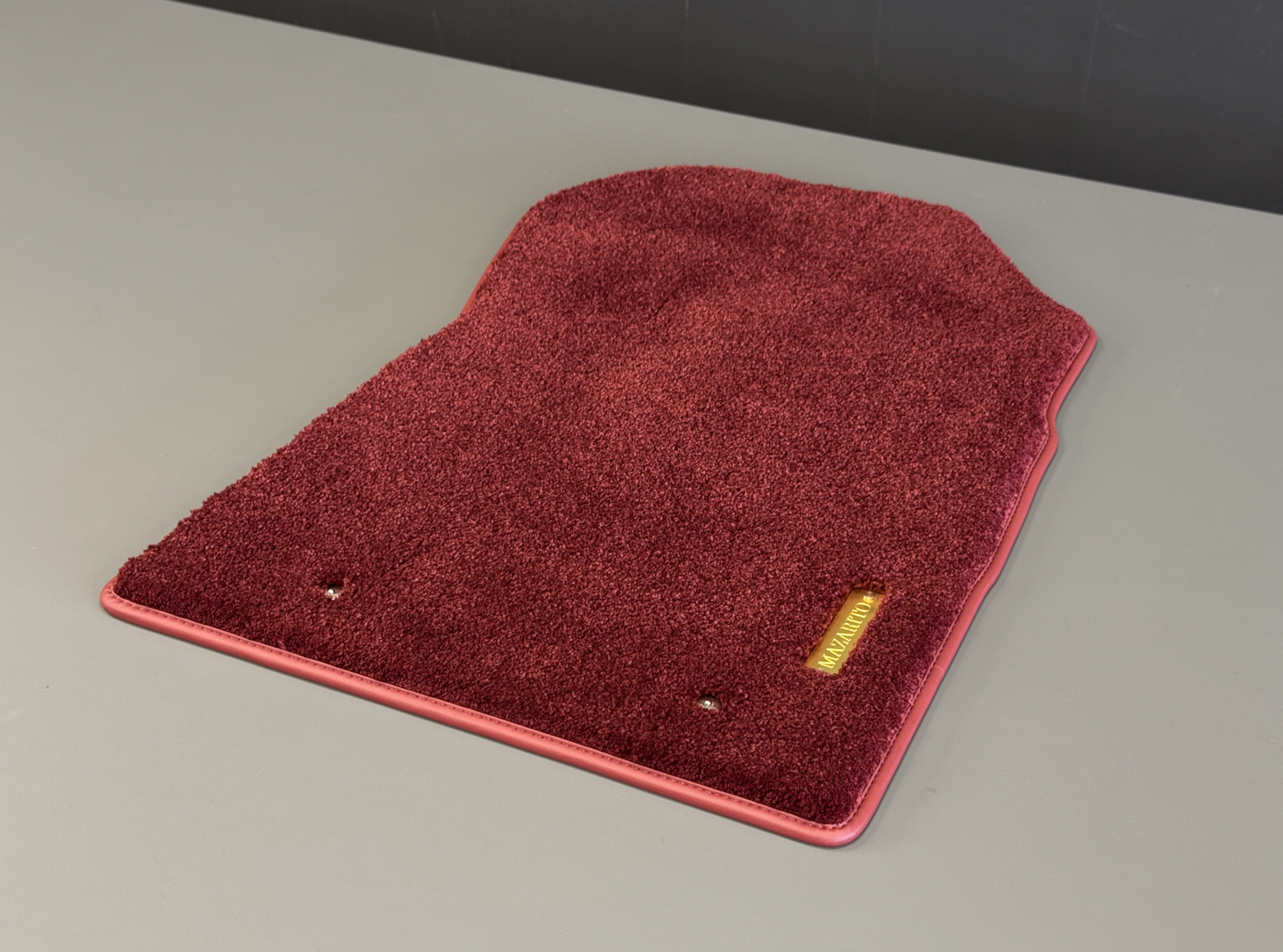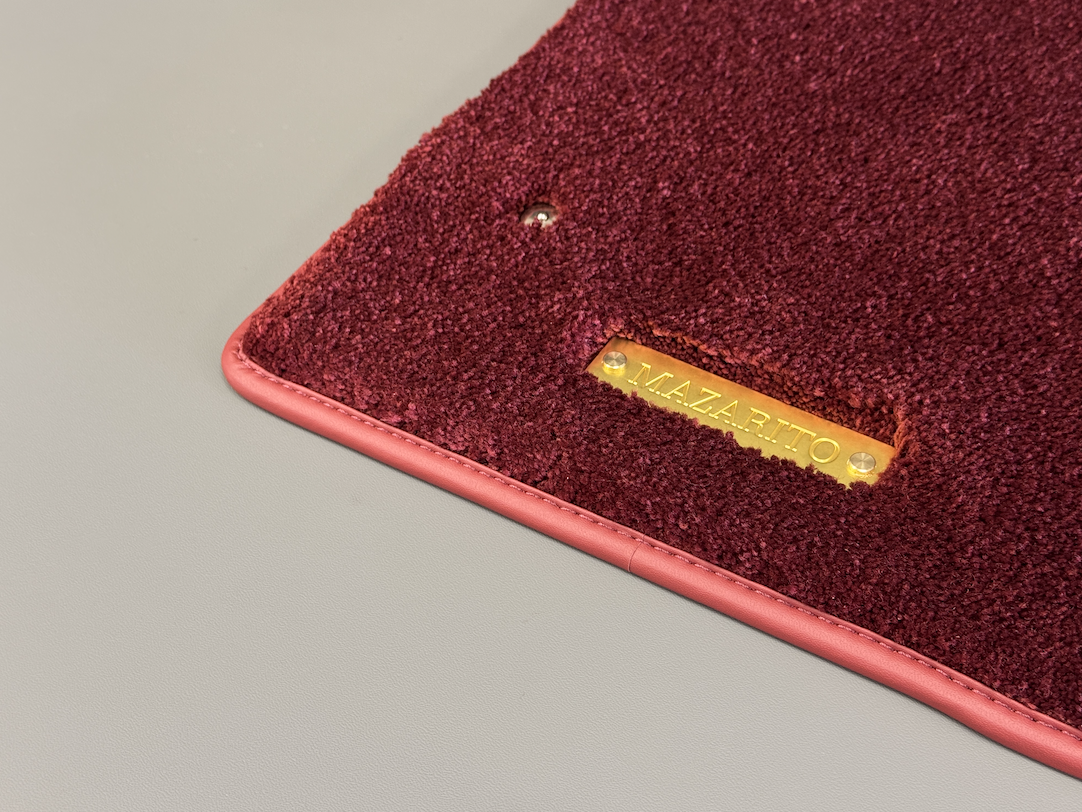 Яркий премиальный ворс красного цвета с золотыми металлическими оригинальными шильдиками MAZARITO.
