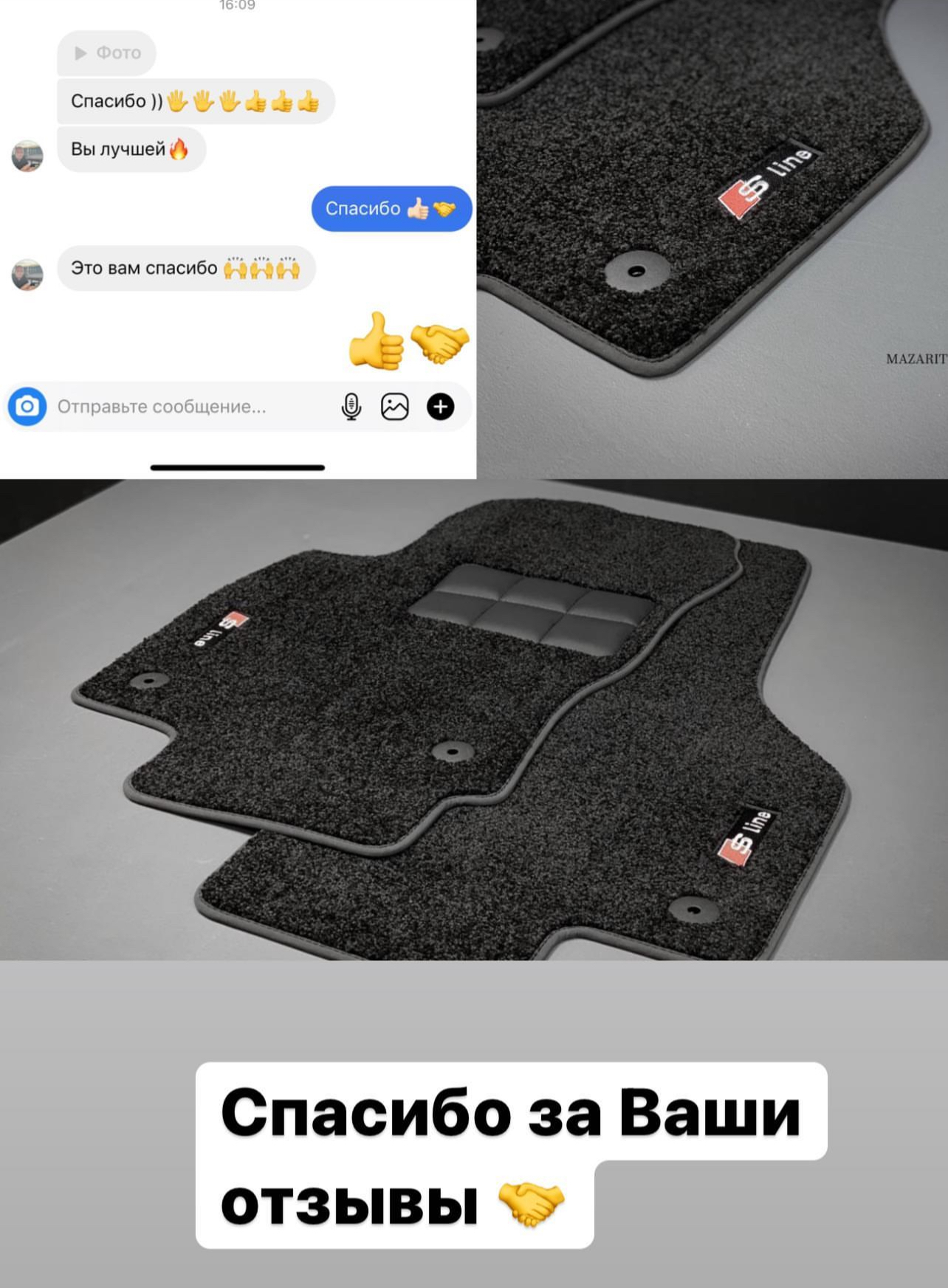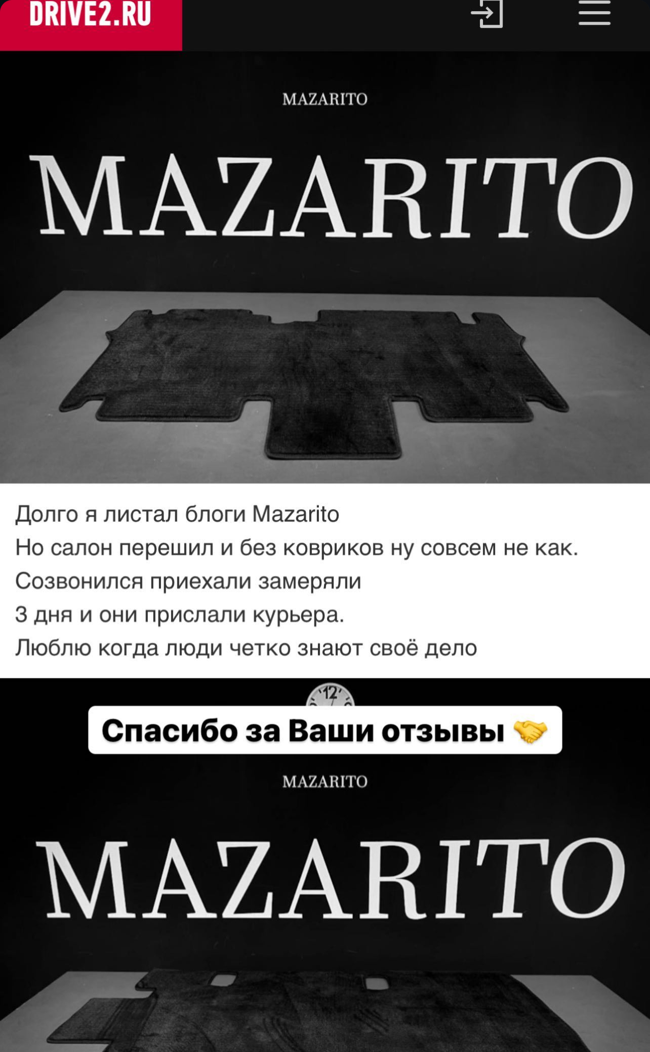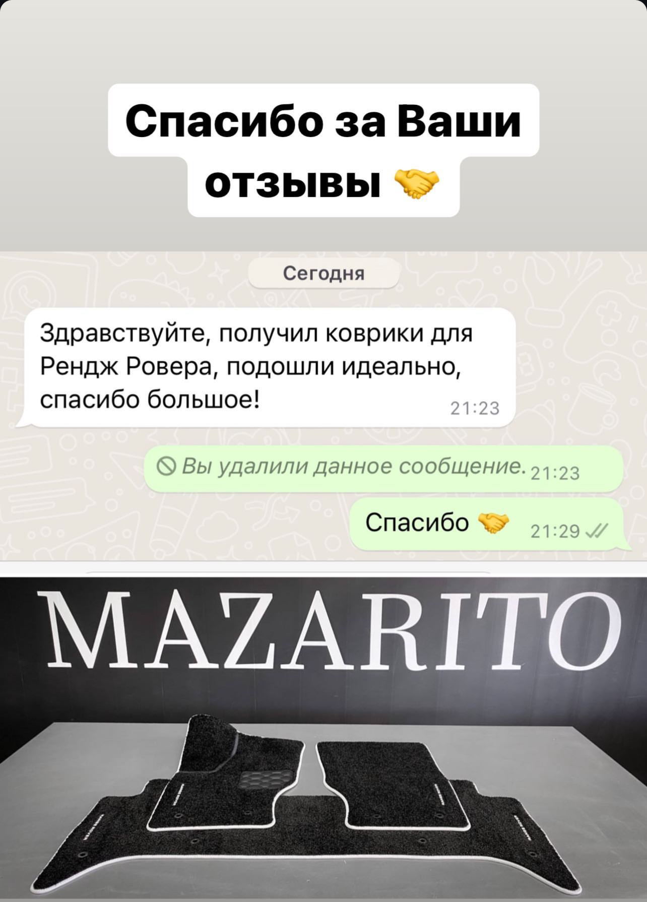 О компании С 2014 года в стенах студии MAZARITO мы изготавливаем автоковрики премиум класса. Производство от 1 дня с доставкой по всей России. Собственное оборудованное ателье. Профессиональные станки в цеху, швейные машинки и мощные сервера для обработки лекал. Доступны опции индивидуального замера Вашего авто и выбор материалов на любой вкус. MAZARITO - Автомобильные ковры как искусство. |