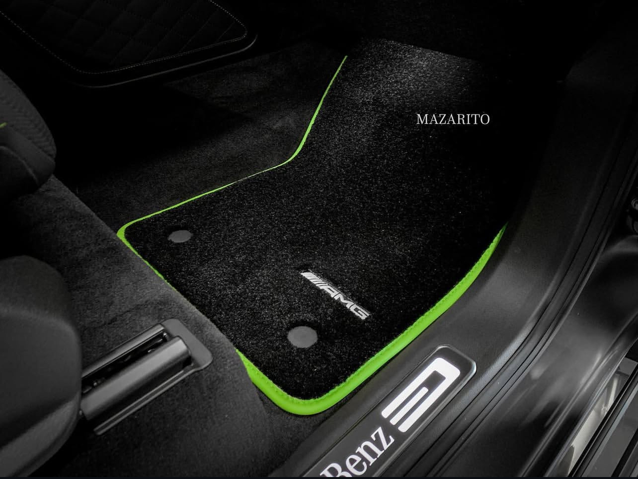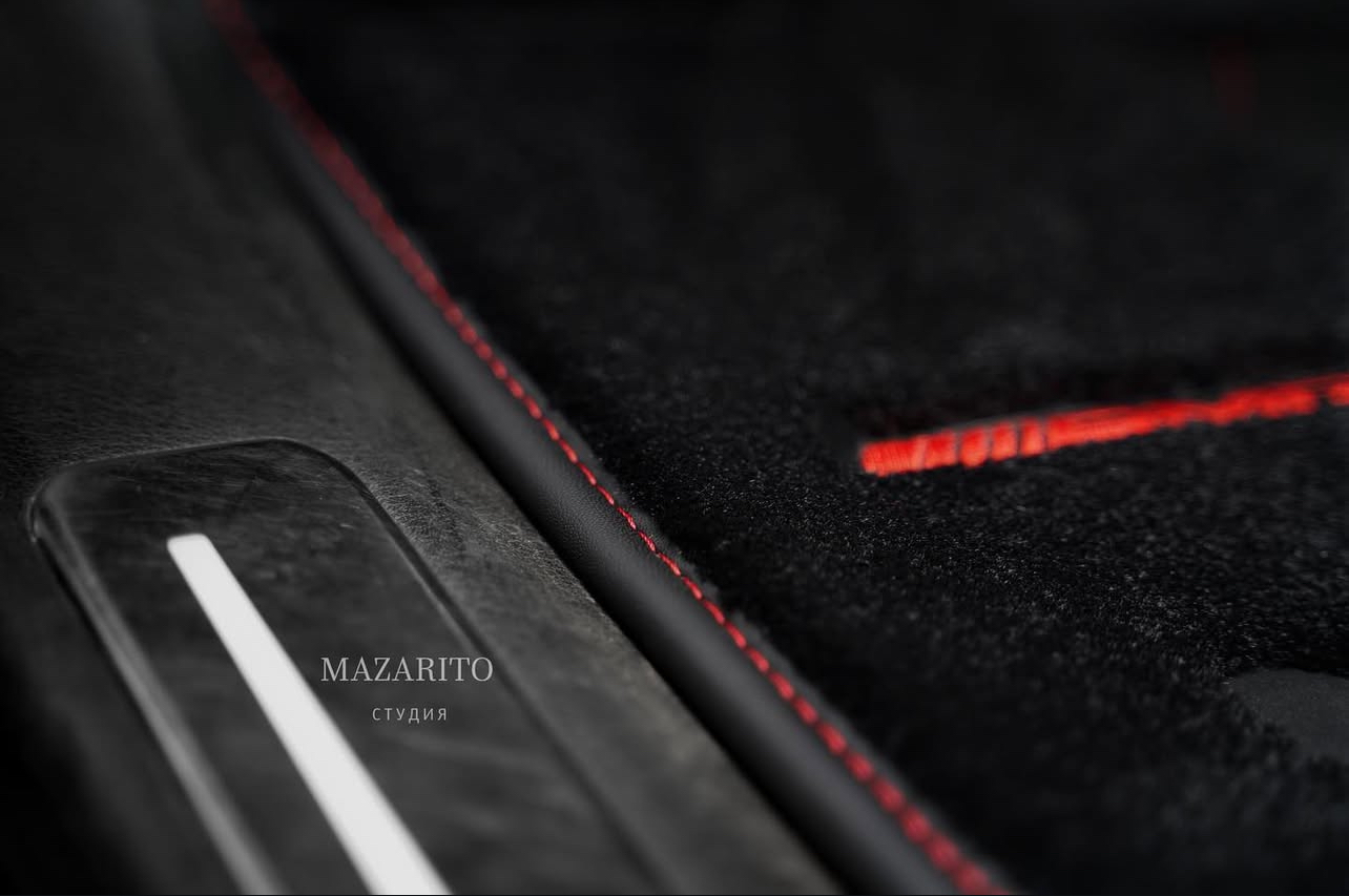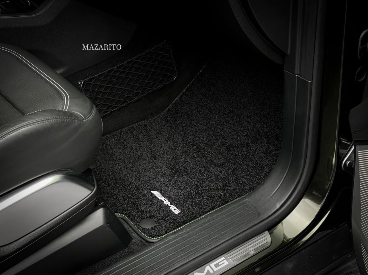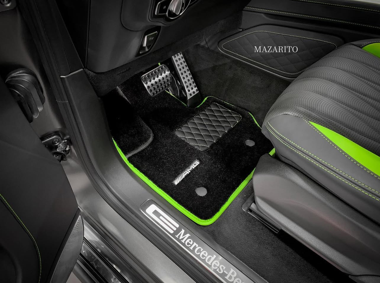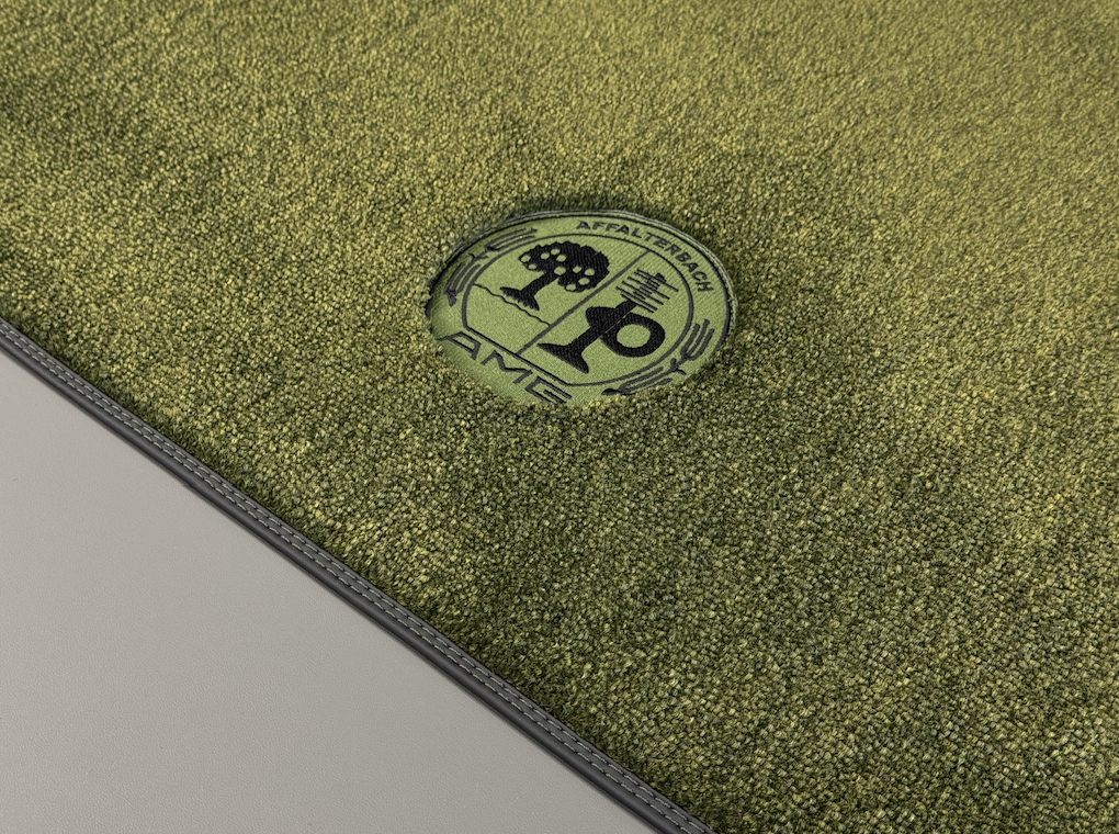 Добавлен подпятник из плотной резины, двойная строчка на окантовке, коврик в багажный отсек и вышивки с эмблемой AMG.