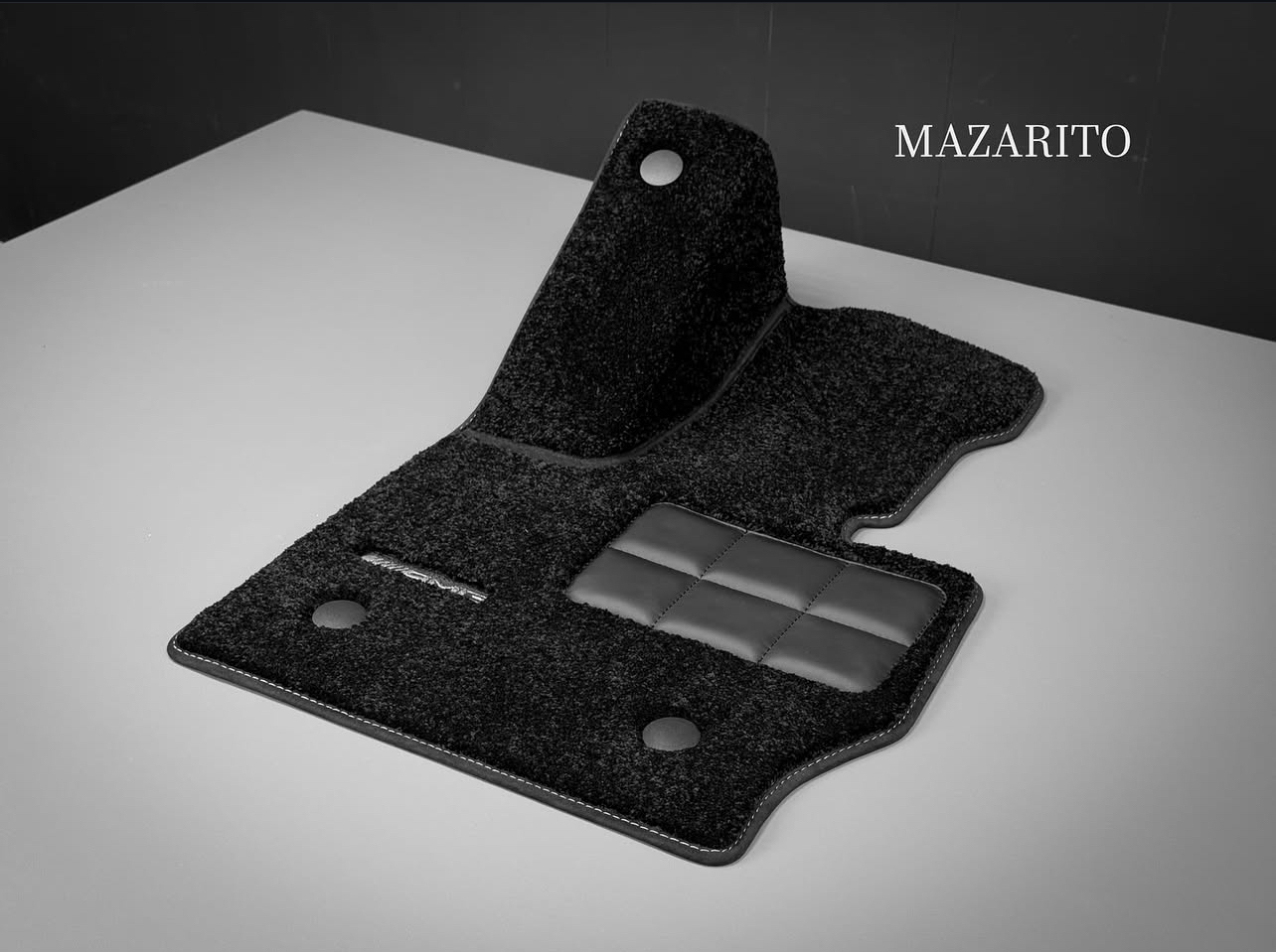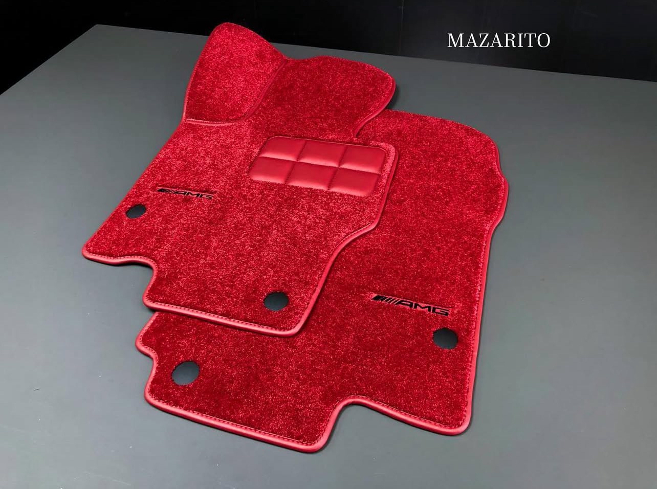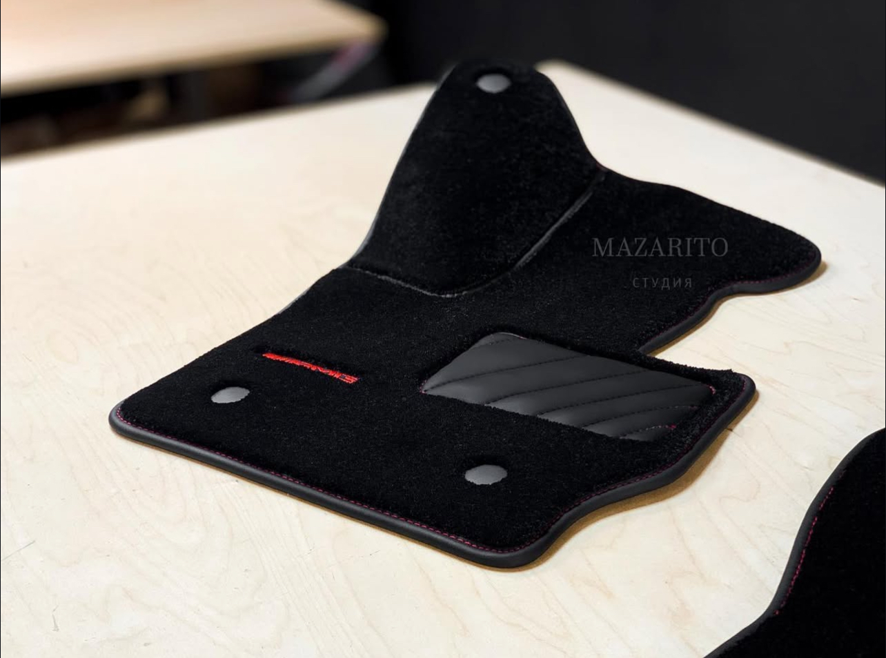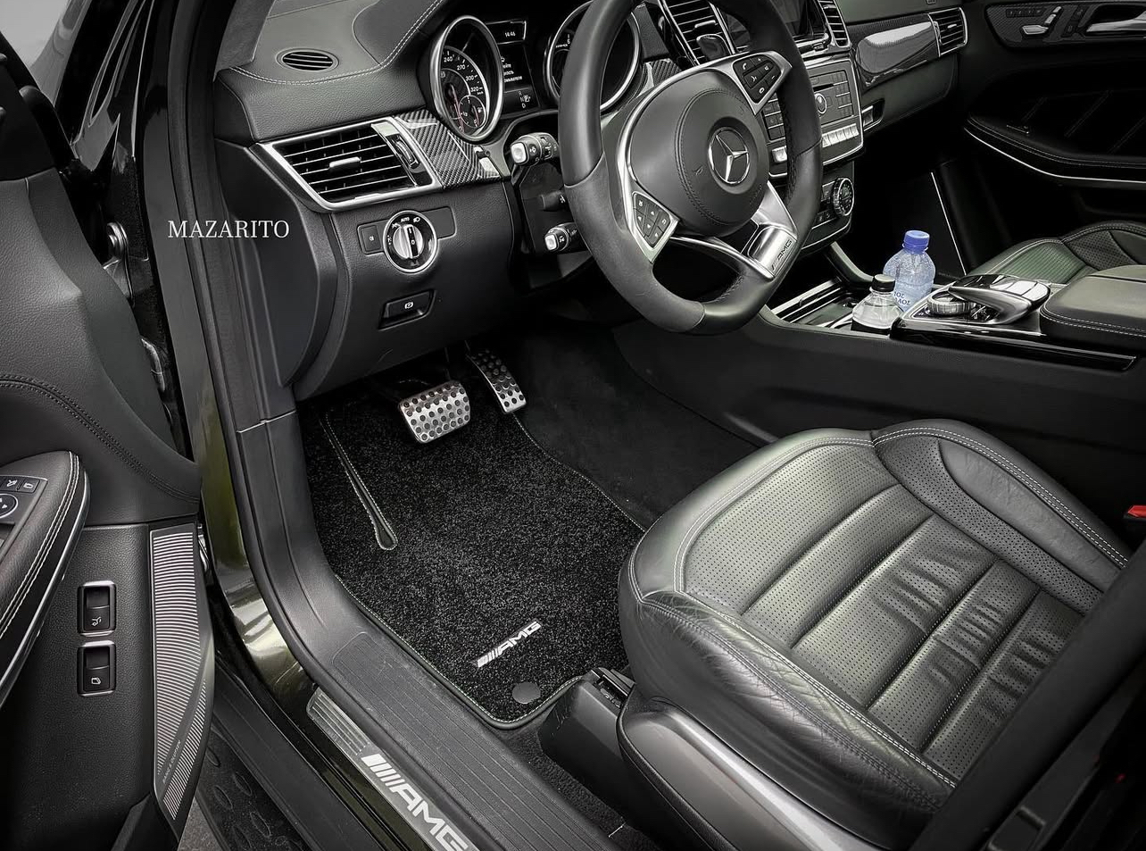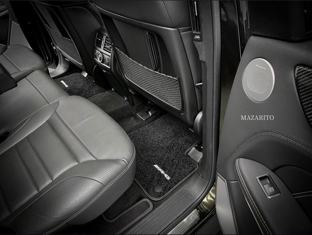 Добавлен подпятник из плотной резины, двойная строчка на окантовке, коврик в багажный отсек и вышивки с эмблемой AMG.