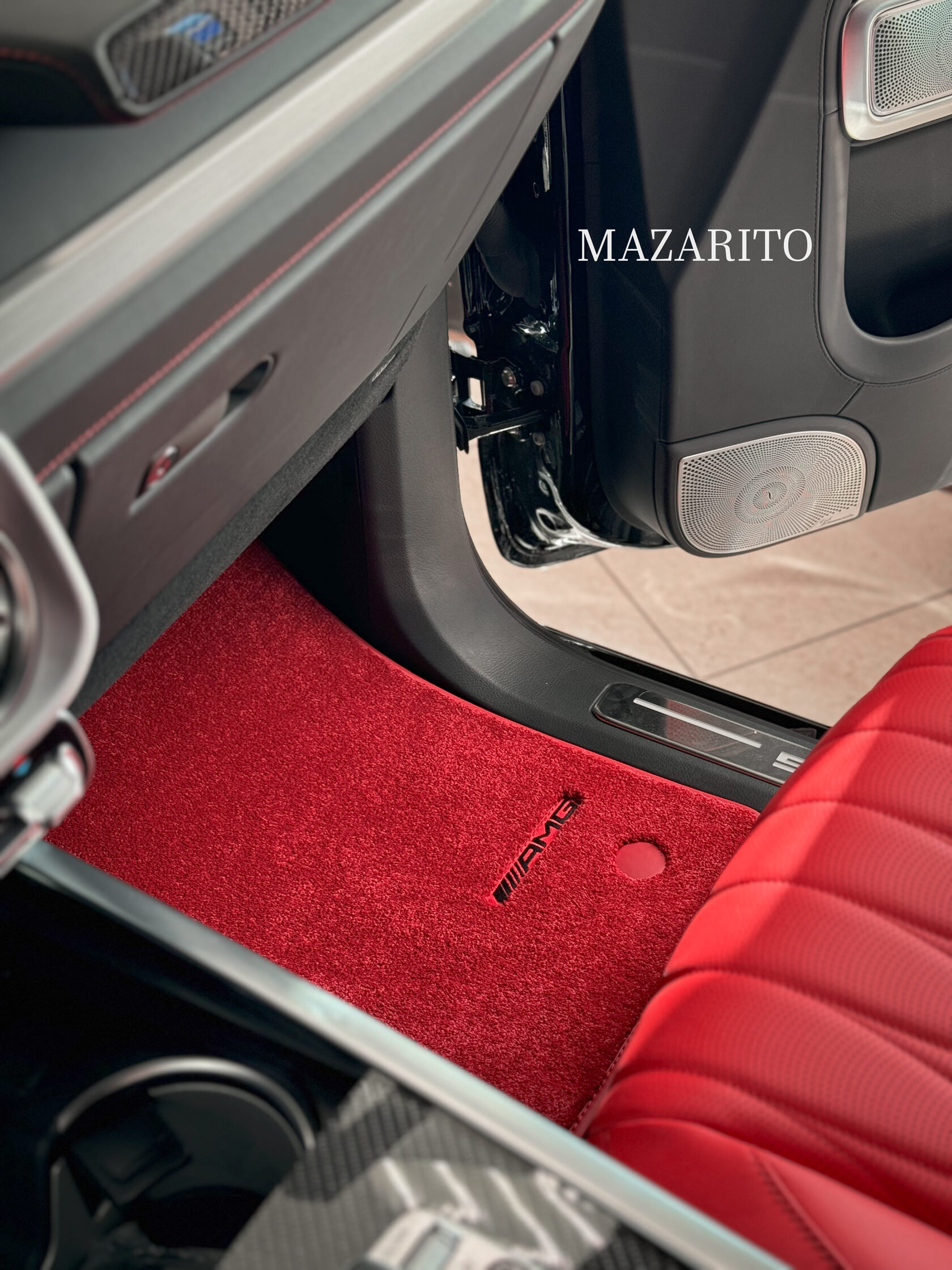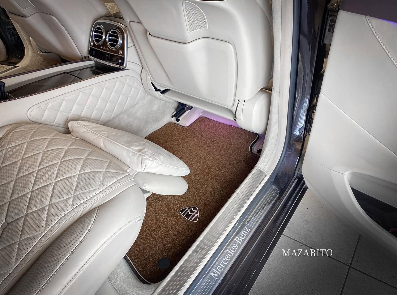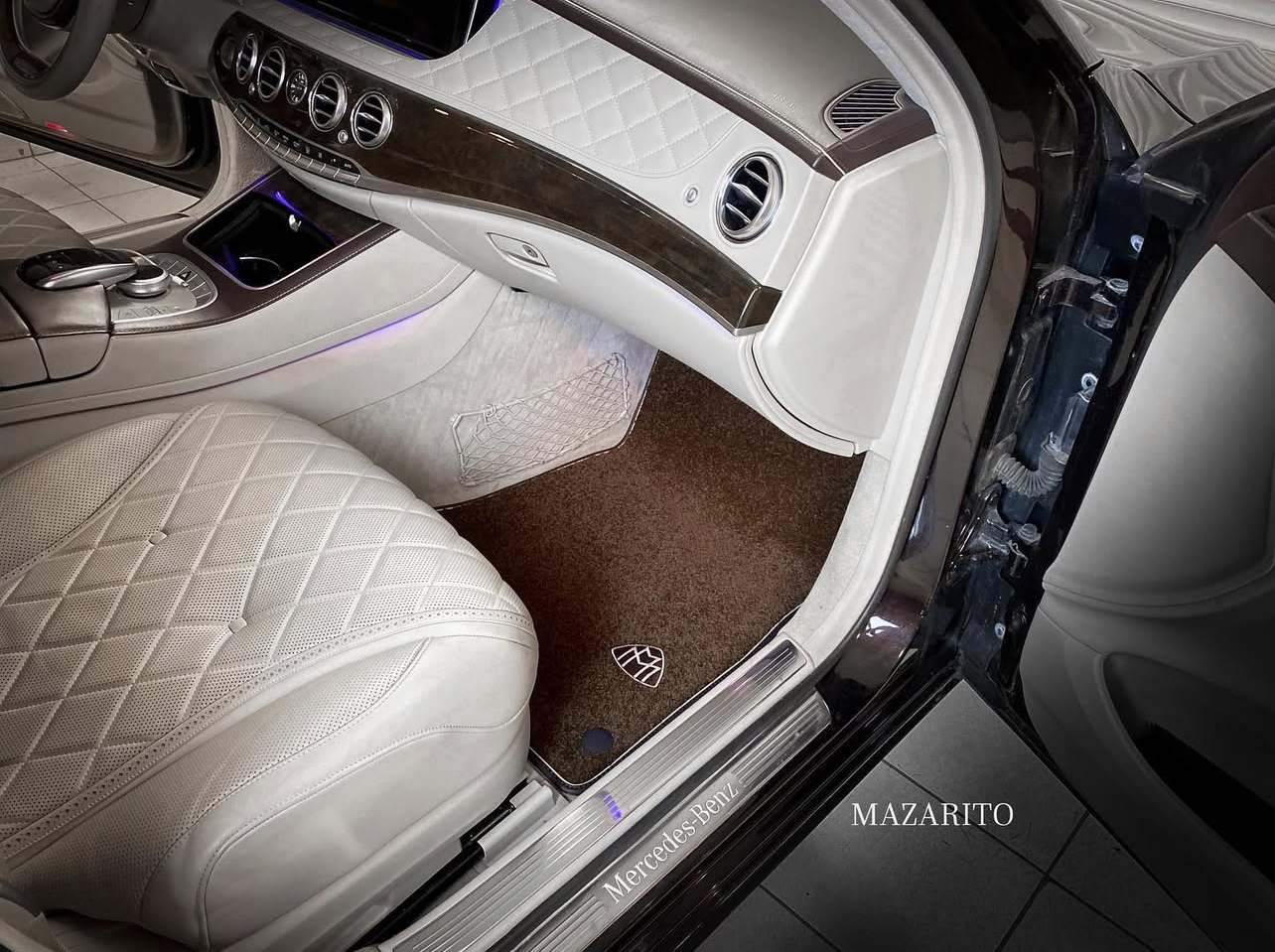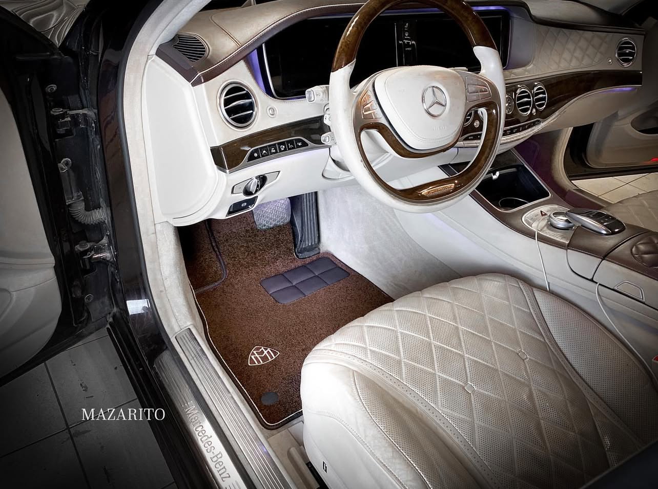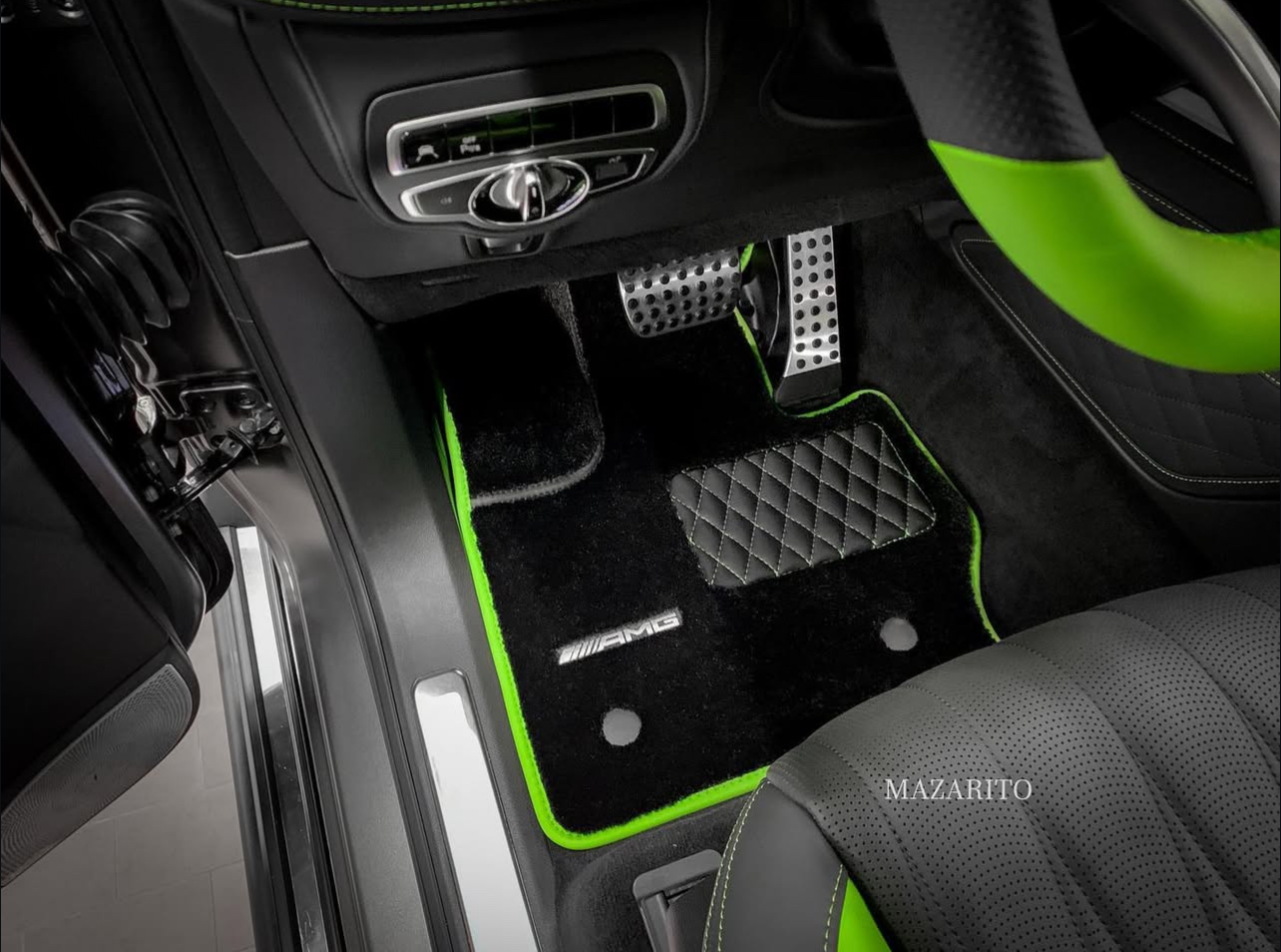 Добавлен подпятник из плотной резины, двойная строчка на окантовке, коврик в багажный отсек и вышивки с эмблемой AMG.