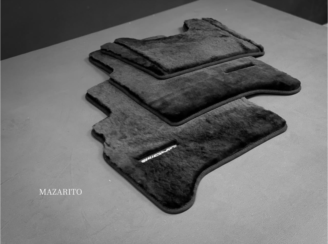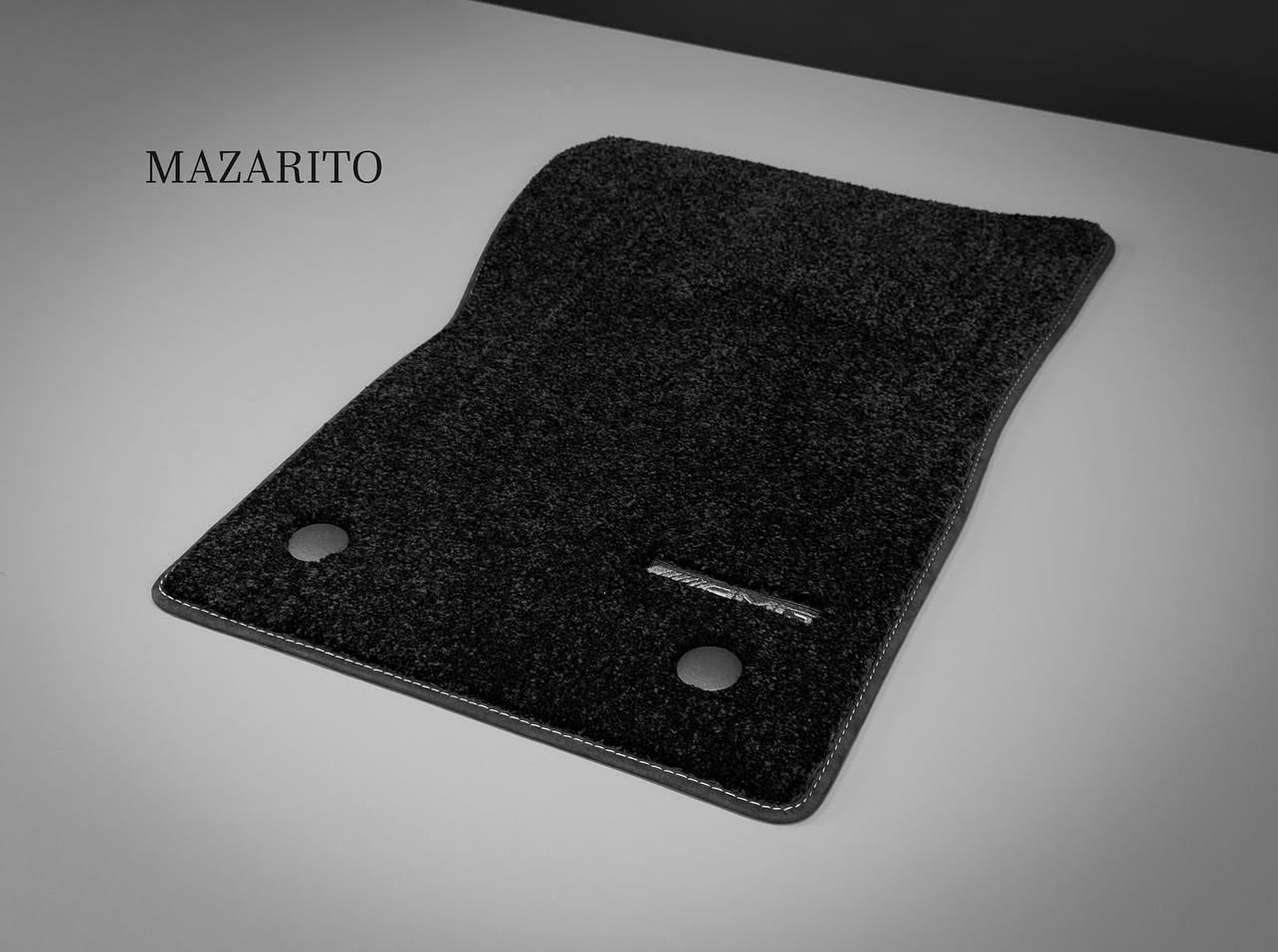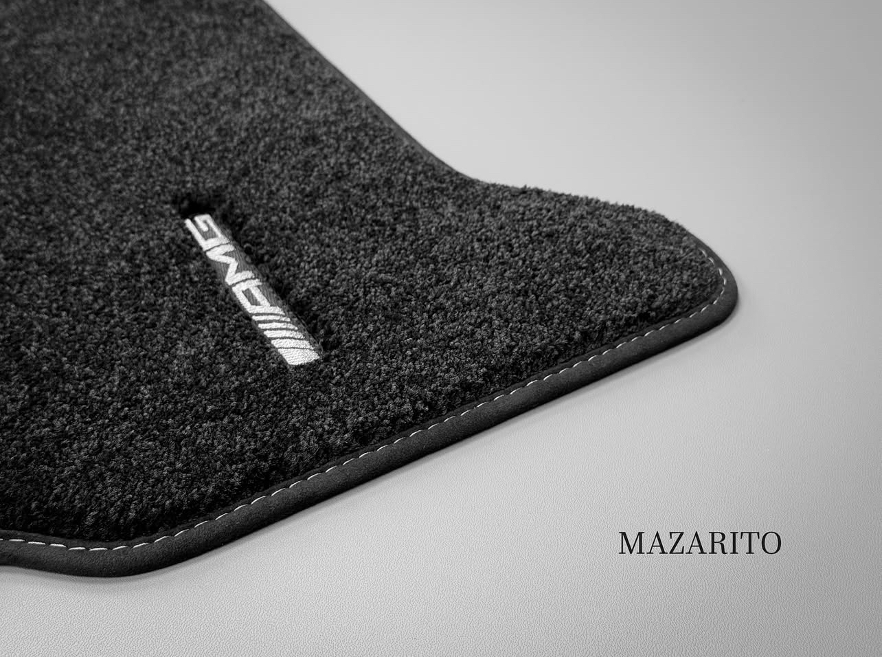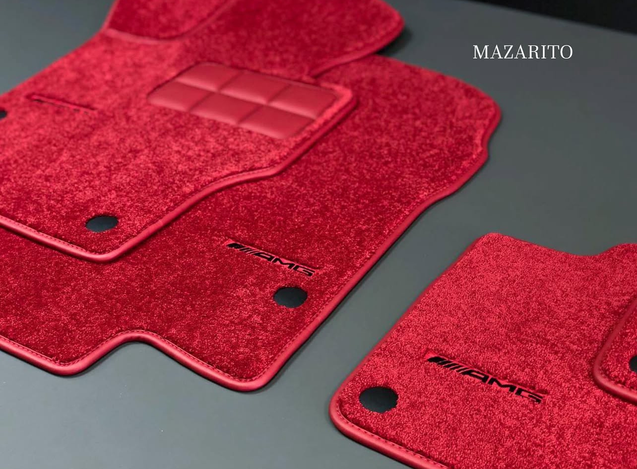 Плотный ворс с крученой нитью на прорезиненной основе. Светлые вышивки AMG в салоне и большая вышивка лейбла AMG в багажном отсеке.