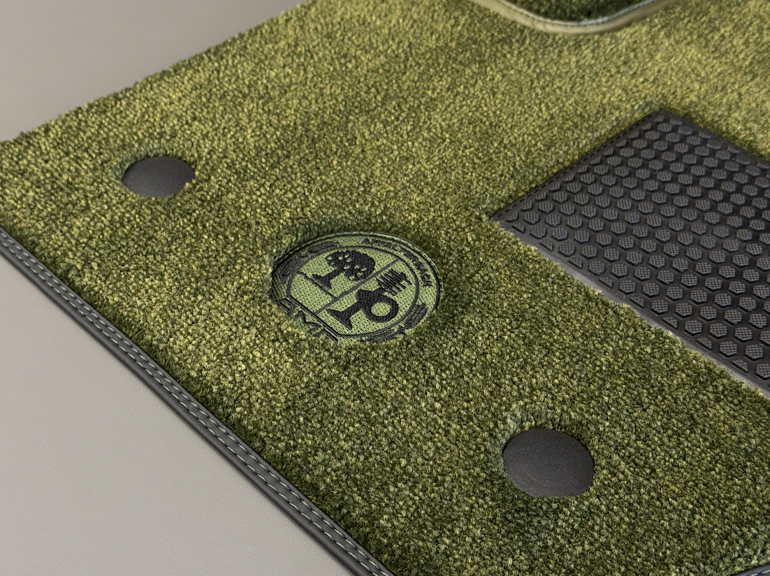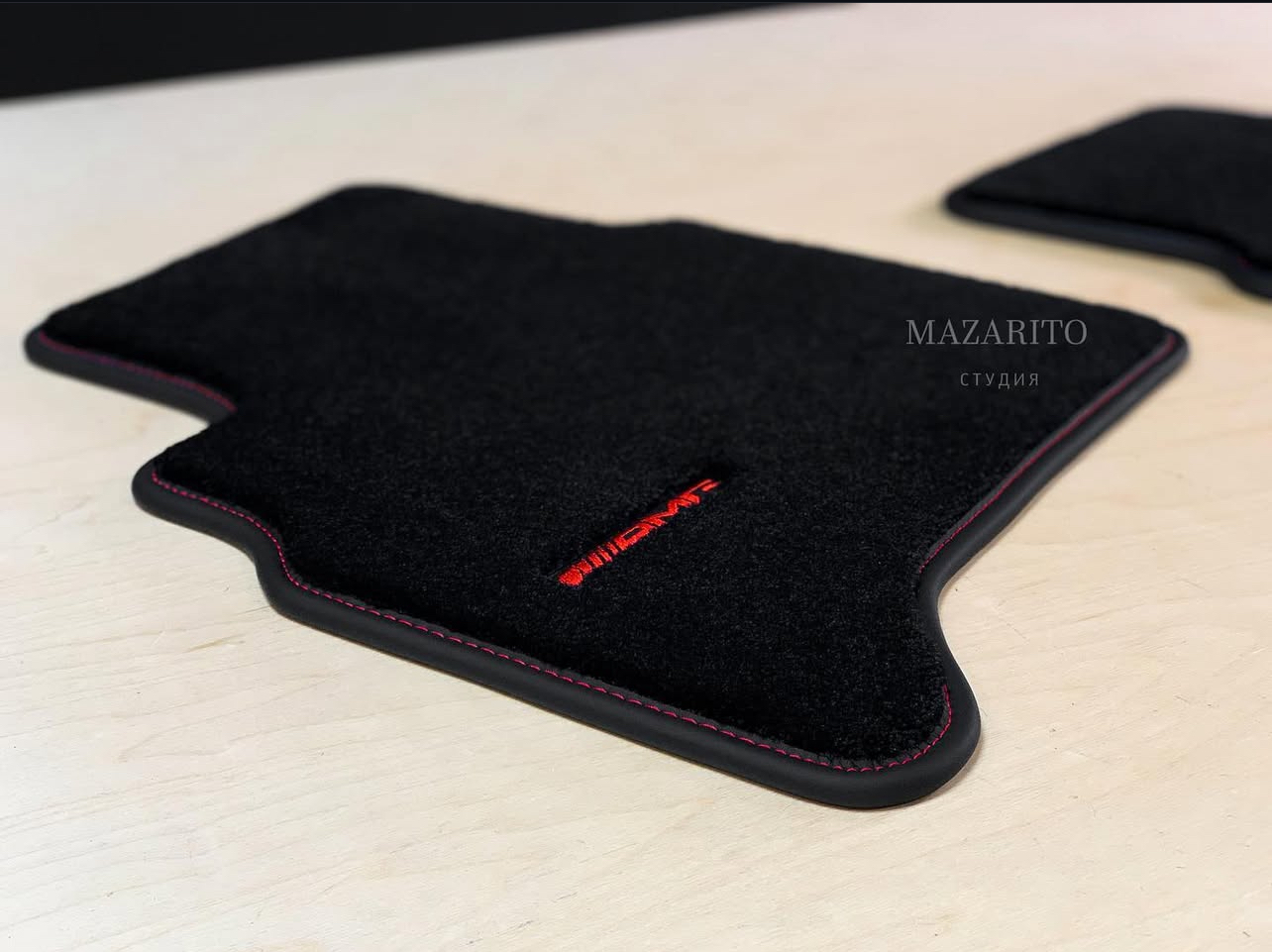 Специально была разработана строчка на подпятнике в стиле линий на вышивках AMG - теперь такой же можно заказать на любую модель авто.