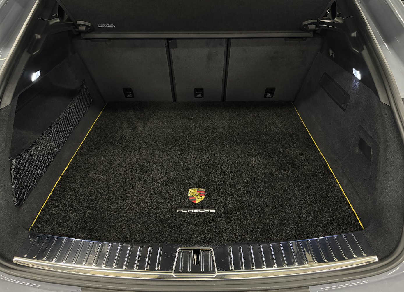 Отлично вписались вышивки логотипов на передних ковриках с гербом Porsche.