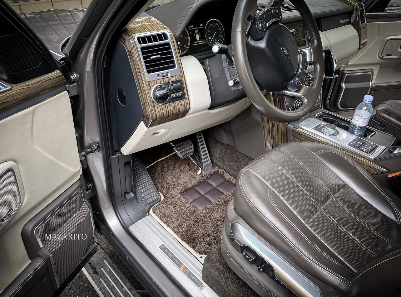 Добавили металлические уголки на коврики и металлические логотипы Range Rover.